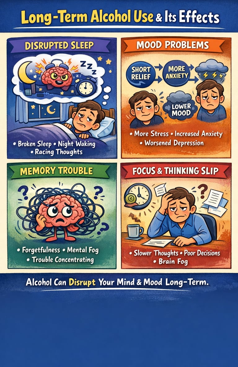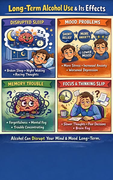 In many cases, anxiety and insomnia are signals — not diseases in themselves. They may reflect chronic stress, unworkable job situations, unhealthy relationships, difficulty tolerating uncertainty, unresolved trauma, or reliance on substances such as alcohol. When these underlying factors are not addressed, controlled medications can unintentionally reinforce avoidance rather than resilience.