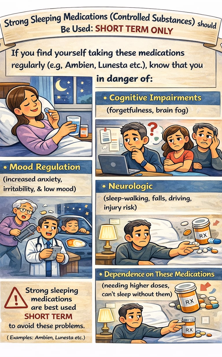Medications such as Xanax, Ativan, Klonopin, Ambien, Lunesta, and similar agents can temporarily reduce symptoms, but they also carry significant risks — including dependence, tolerance, cognitive effects, emotional blunting, and addiction. I have witnessed how lives can become narrowed around these medications: the fear of running out, escalating doses, urgent demands, and a growing sense that one cannot function without them. These are not signs of healing; they are signs of harm.
